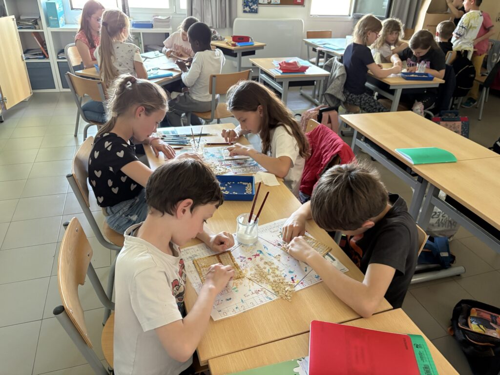 Dans le cadre de notre projet d’année sur les périodes historiques, les élèves ont réalisé une fresque collective gallo-romaine en mosaïque mais s’attellent déjà à construire leurs châteaux forts 🏰 👑