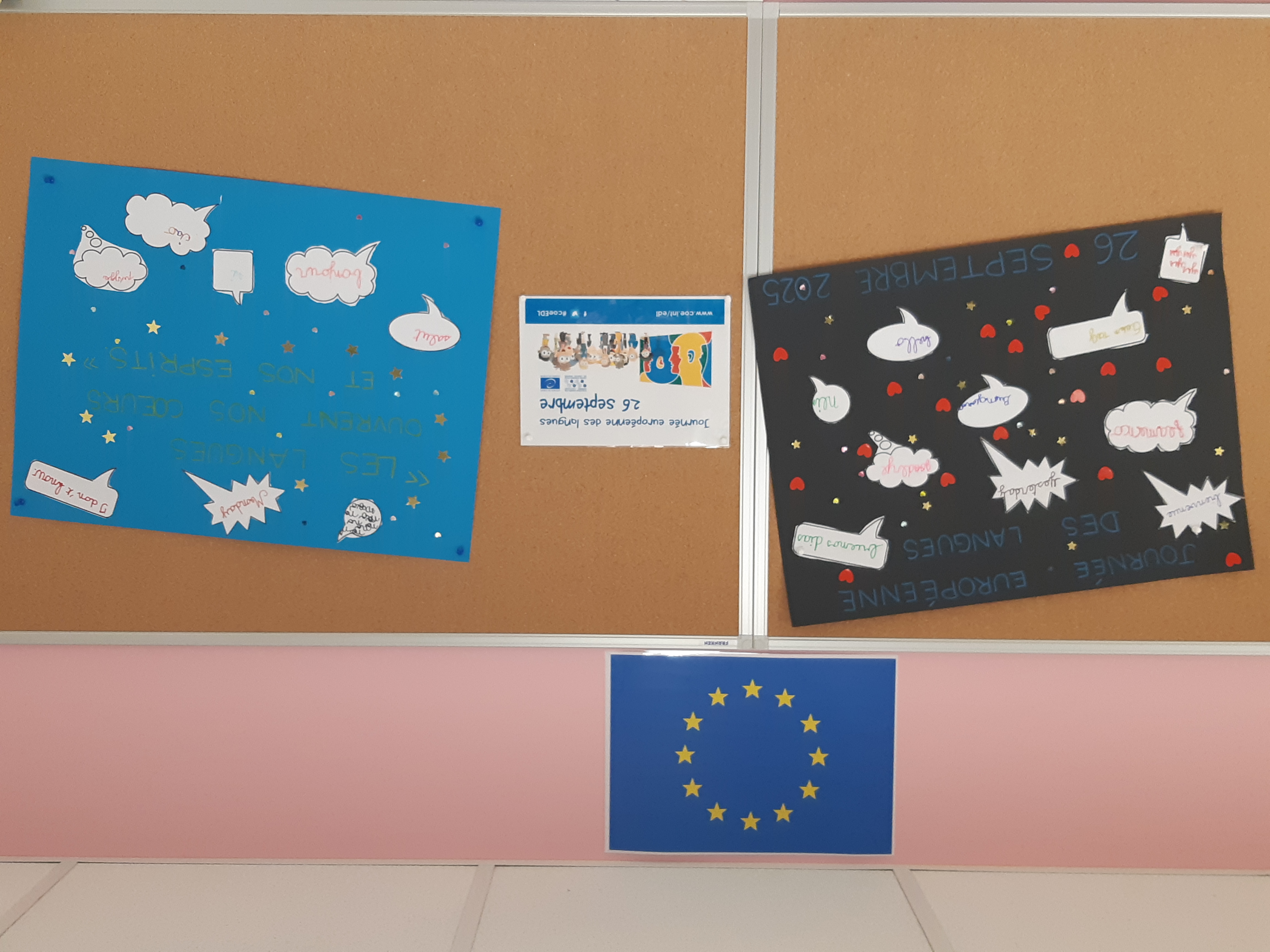 Le 26 septembre 2025, nous avons participé à la journée européenne des langues. Cette journée met à l’honneur la diversité des langues parlées en Europe et vise à sensibiliser les élèves à l’importance de l’apprentissage des langues. Les élèves ont crée une affiche illustrant la devise du 25ème anniversaire de la Journée européenne des langues : « Les langues ouvrent nos cœurs et nos esprits ! »