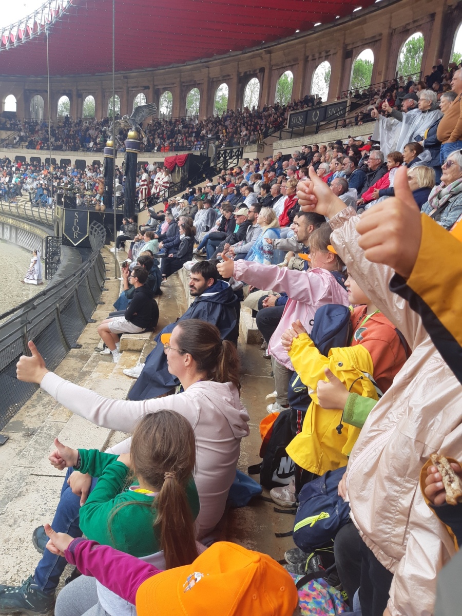 Sur une journée quelque peu rallongée, les élèves de CP, tous équipés de leur casquette de l’école Saint-Michel, ont ainsi découvert cet immense parc, ses villages et ses superbes spectacles se déroulant au cours des grandes périodes historiques : le Signe du Triomphe (cirque gallo-romain), les Vikings, le Premier Royaume (baptême de Clovis), le Secret de la Lance (Jeanne d’Arc), l’Épée du Roi Arthur, le village médiéval et ses artisans, les fables de La Fontaine, les Mousquetaires de Richelieu et même les Automates Musiciens dans le bourg 1900…