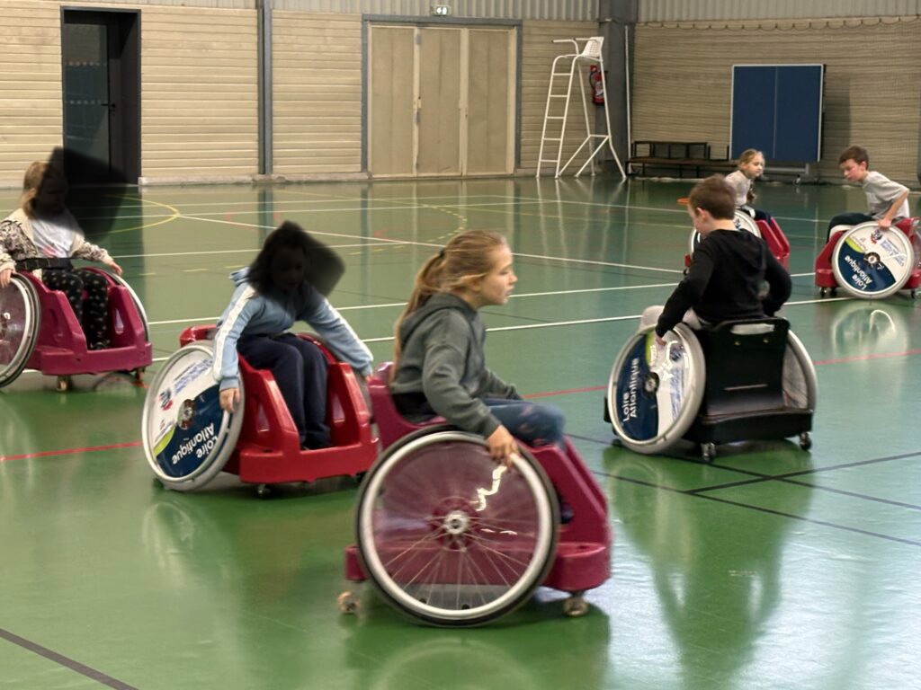 Ă la fin de la session, les Ă©lĂšves ont pu vivre une sĂ©ance avec des fauteuils adaptĂ©s. Il a fallu faire preuve dâadresse, de patience et dâagilitĂ© pour manier « lâengin »!