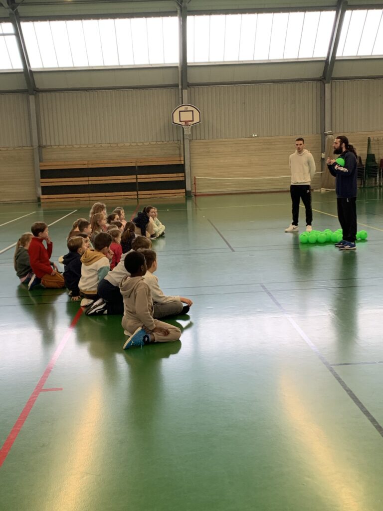 Durant toute la pĂ©riode les Ă©lĂšves de CE1/CE2 ont pu bĂ©nĂ©ficier dâune initiation au handball. Certains dâentre eux se sont rĂ©vĂ©lĂ©s !đ
